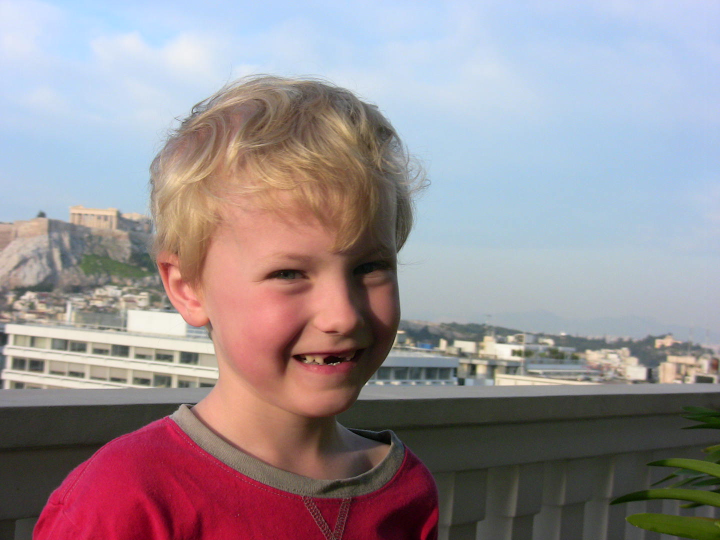 The latest from Athens: Will lost the second of his front teeth this morning, while brushing. He’s all smiles — even though he popped awake, for good, today at about 4 a.m.