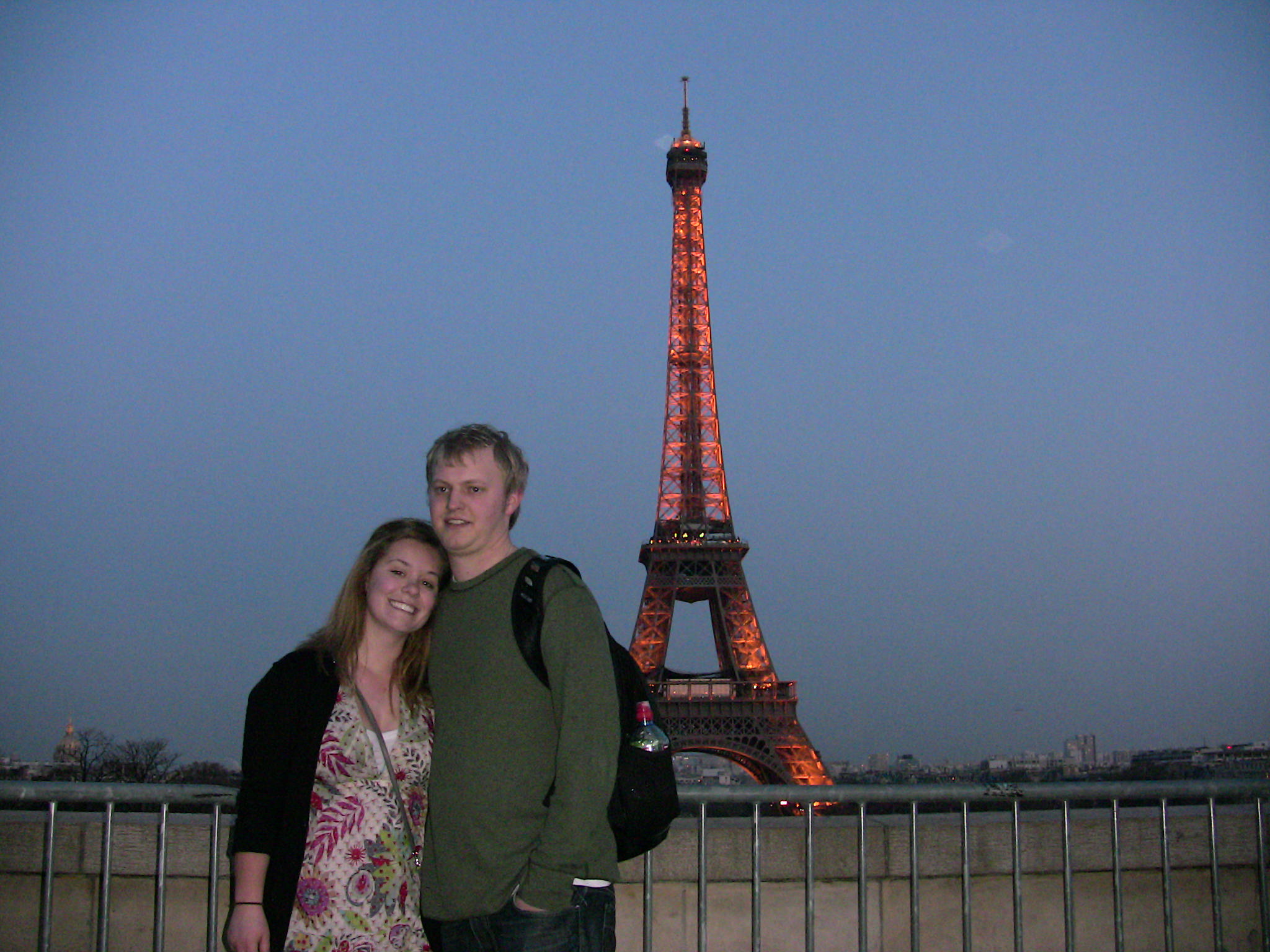 In the evening, we trudged to the Eiffel Tower. We tried to take the metro but someone had thrown themselves on the tracks, so we took two cabs to the heart of touristy Paris. Will begged to go up in the Tower, but the wait was far too long for the elevator to the top, so we bought tickets to take the stairs to the first level — that broad part you see partway up. We fought off some impudent Italian high school students and made our way up for the sunset and a great view of the city. As we left up the Trocadero, across the Seine with a view down on the tower and the Champs de Mars, the tower lit up. As a bride and groom had their wedding photos shot against that backdrop, we descended to the metro, where Rick deftly averted a pickpocketing with one of his steely glares. (The guy saw Rick’s backpack and darted off after him; I noticed, so did Rick, and the guy veered away. Phew.)