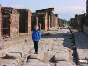 We walked and walked in the brilliant sunshine, Will darting in and out of the maze of rooms, some still carrying remnants of spectacular wall paintings, strolling through the grassy amphitheater, where gladiators battled to the death. We saw the Villa of the Mysteries, with its gorgeous wall frescoes, narrated for us by a Japanese tour guide, the only other people who ventured that far out of the city walls. They marveled at Will, dodging one of the sweet but hungry dogs, who roamed the villa. Inu wa inu, they said. Dogs will be dogs.