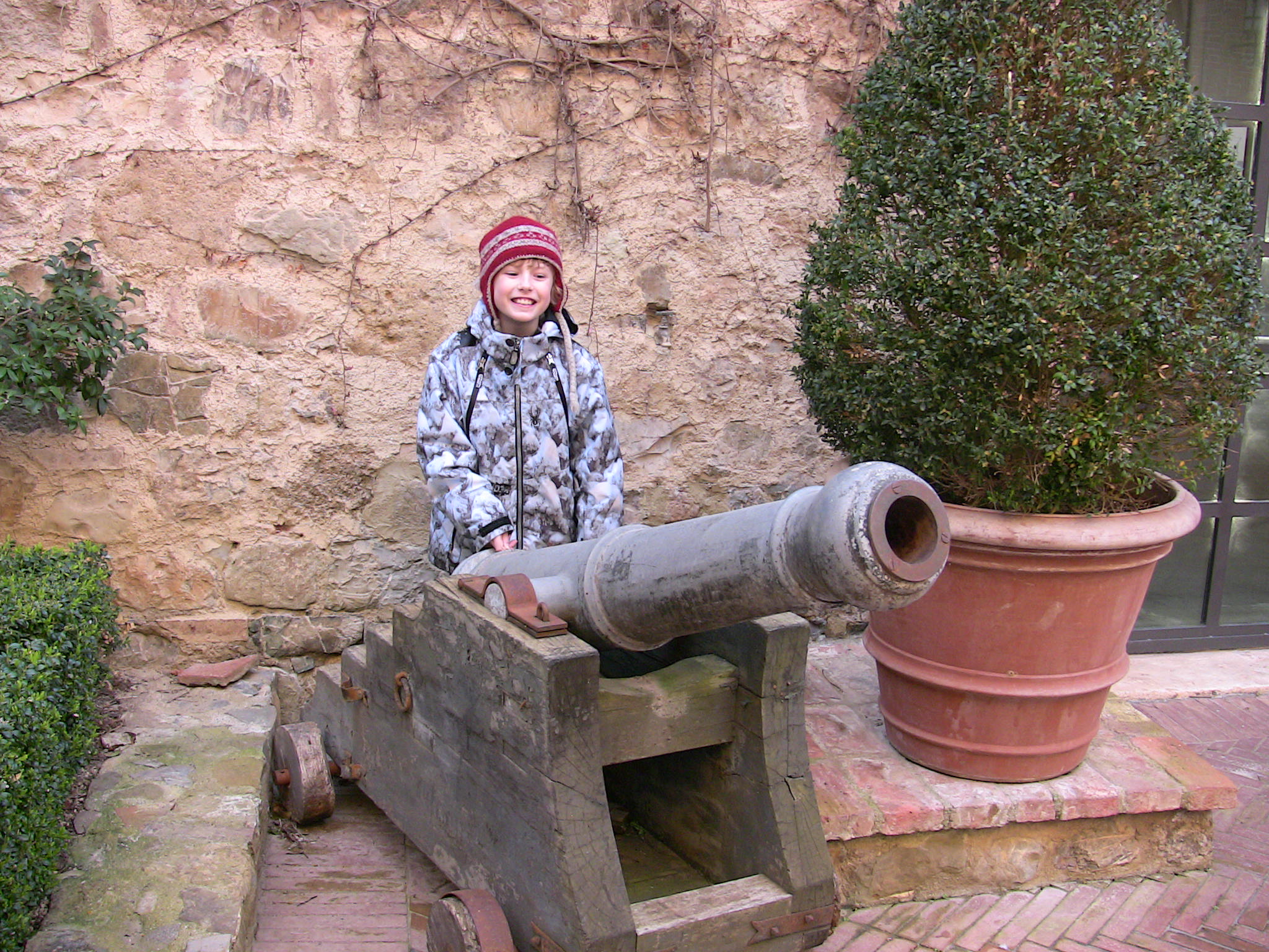 POGGIA ALLA MURA, ITALY, Saturday, March 26, 2011 — So we woke to beautiful sunshine and a view of the Tuscan vineyards known for its Brunello wine stretching out below us. We love the window coverings in Italy — here they are dark wooden shutters that are not only lovely but completely block out the light. We speculate that Italians are good at blocking the morning sunshine because everyone dines so late. But maybe it really has to do with keeping out the daytime heat. In any case, it’s glorious for sleeping in — unless you have a 7-year-old German girl and her mother in severe high-heels pounding over your head all night. The building is 200-plus-years old right? Well, if you know me, you know I’m fairly copacetic about most things — except people keeping me up at night — especially if you have to hear them every time they get up to use the bathroom in the night. I felt terrible about complaining about such a lovely place, but it was totally harshing my mellow.