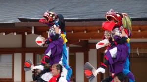 We started the day at 4 a.m. (Helen at 3 a.m.) and waited until 6 a.m., shortly before sunrise, to set out. We walked around the jogging path that encircles the moat of the Imperial Palace, pausing at the famous Nijuubashi for a photo. Will raced across the empty gravel parking lots and worked off pent-up energy from yesterday’s plane ride. Mike was thrilled to pass by the Nippon budokan, a concert hall which apparently is famous for hosting a Cheap Trick concert album. We ended up at the infamous Yasukuni Jinja, a Shinto shrine known best for the controversial visits of former Prime Ministers to the shrine. The shrine, dedicated to those killed in war, includes among its enshrined convicted war criminals from World War II. I’d been before to watch my homestay mother dance in a performance, but I thought Helen and Rick, being news people, would be interested in seeing a place so often in the news. We ended up watching an 8 a.m. festival that included drums, and small children in traditional costumes being held aloft with small swords, Japanese flags tucked in their toes and hands, lion head masks on their small heads. One man supported another man, who stood on his shoulders, who in turn held up a child doing a Cirque de Soleil routine with the aforementioned swords. Mothers stood by proudly snapping pictures while I held my urge to shout “This isn’t safe — the ground is made of granite, people!” But seriously, it was a wonderful treat to see the performance.