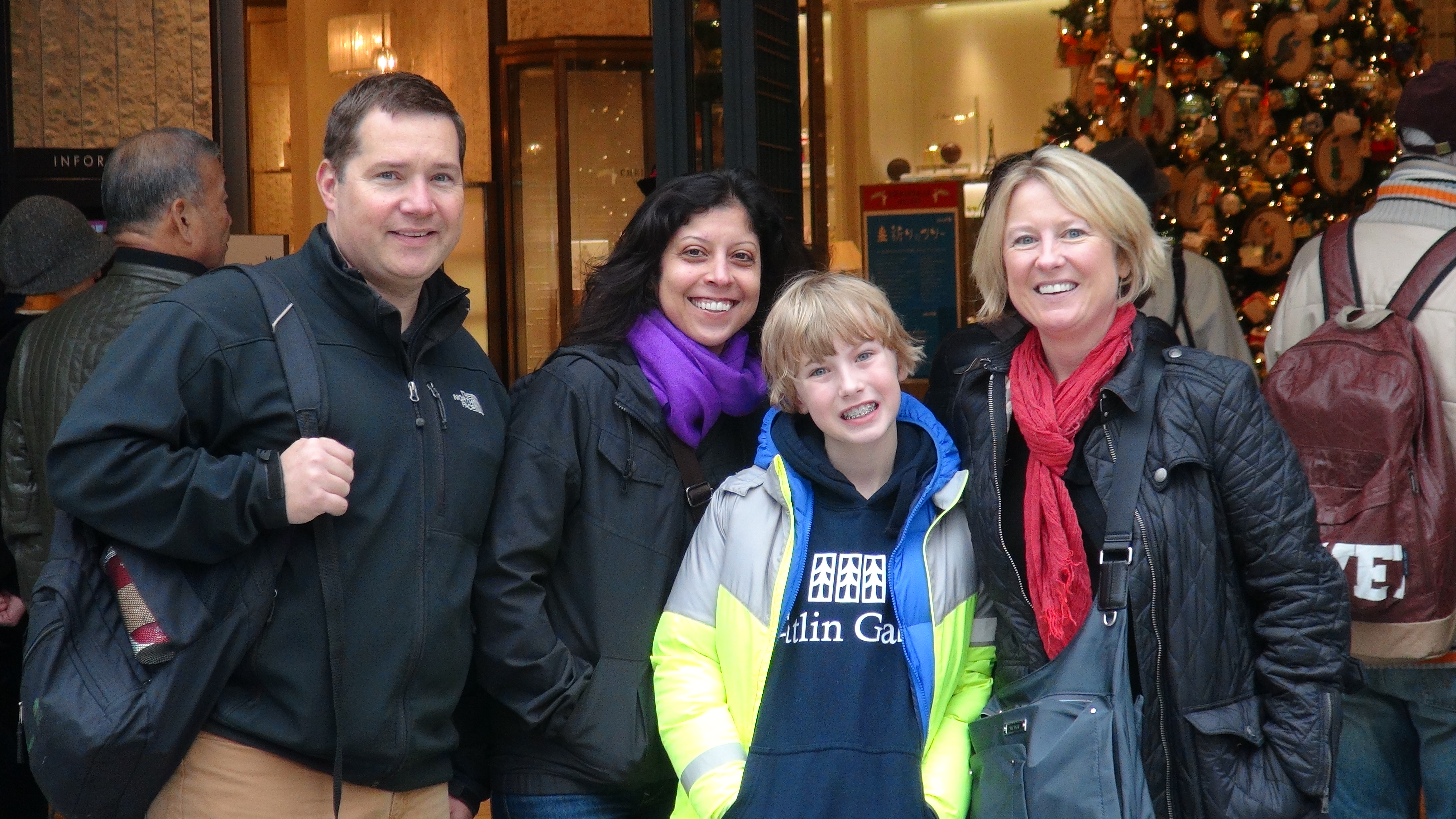By 8:30a.m. we were freezing so took refuge in a Starbucks to warm up before tackling Ginza, the famous, glitzy shopping district. Highlights included witnessing the opening of the venerable Mitsukoshi department store. It was a very Japanese scene. Employees opened the doors at opening, but the waiting crowd, rather than rushing in the open doors as they would back home, continued to quietly wait until they were formally invited inside. We were greeted with deep bows by literally dozens of employees as we walked through the store, as they welcomed the day’s first customers.