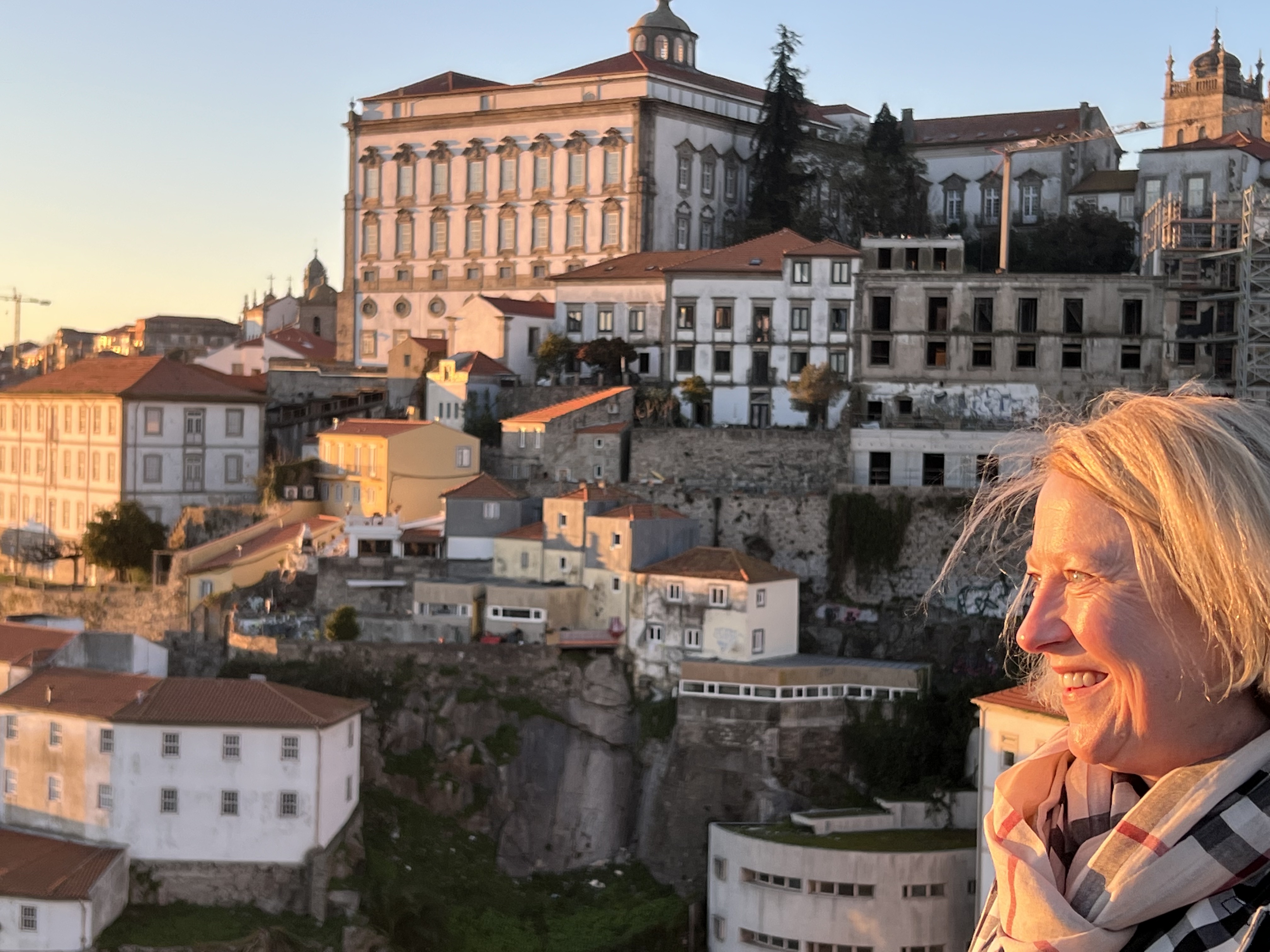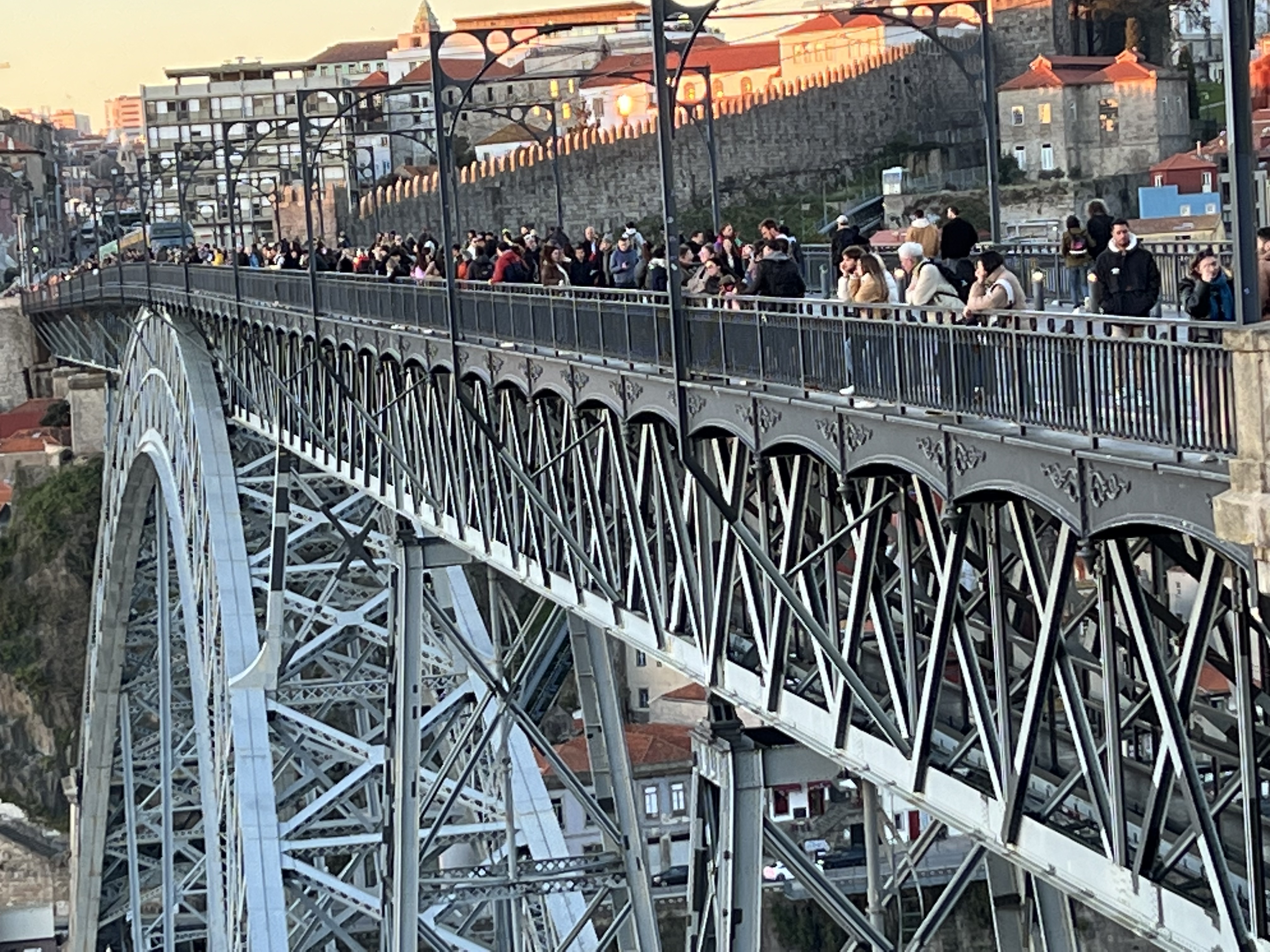 Saturday, Jan. 28, 2023, Porto, Portugal – Natives of this hard-working northern Portuguese city have a saying that “While Lisbon plays, Porto works” – in reference to its nearby textile manufacturing and especially its 300-year-old history of exporting port wine. But from our brief 48-hour experience so far, it appears that Porto has become a major playground both for Portuguese, but especially for foreign tourist from around Europe, Asia and the Americas. Lisbon was a ghost town compared to Porto. I think that while Portugal seems to be the “it” destination right now globally, Porto is the “it” destination within Portugal. (We were sitting by two restaurateurs the other night at a Lisbon rooftop restaurant, and they were discussing how to appeal to tourists – it was fascinating. They said you have to get your restaurant mentioned in one of the many “top 10” listicles by the various travel publications, and especially Time Out.) Well, Porto is apparently topping many lists – we tourists are like lemmings. But happy lemmings. And we have managed to not go over the cliff yet. There are lots of cliffs in this city that straddles the Douro River, 1.5 hours downstream from the UNESCO World Heritage port vineyards.