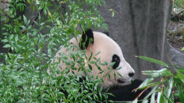 and I enjoying a young panda skittering through the grass only a few