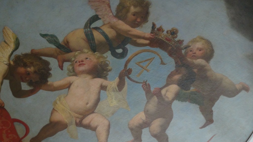 So we went back to Rosenborg Castle and waited with a tour bus or two that emptied out some more Thai tourists. Eventually we got to go into the castle, which was beautiful on the outside, and garishly furnished and decked out in the inside. We saw some crown jewels, some weapons, some tapestries, a lot of pretty ugly furniture, and hit the road again, this time for the nearby Danish National Art Museum.
