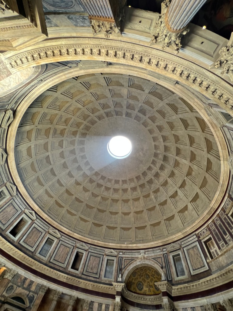 Afterwards, we went to the Pantheon – how could we see two of the world’s greatest structures in one day? Did that really happen? It is a transformative space, with its beautiful oculus and coffered ceiling. We had some wonderful granita afterwards, and you could see the majestic structure peeking around the corner, and it really didn’t feel real. I was once skeptical when Yale University’s Diana Kleiner proclaimed the Pantheon was the most beautiful building in history, but I am now a convert. St. Peter’s may be spectacular, but the Pantheon is almost like one of Plato’s “forms,” the ultimate ideal of what a building should be. We will have to ask Will if I am totally off base on this one.