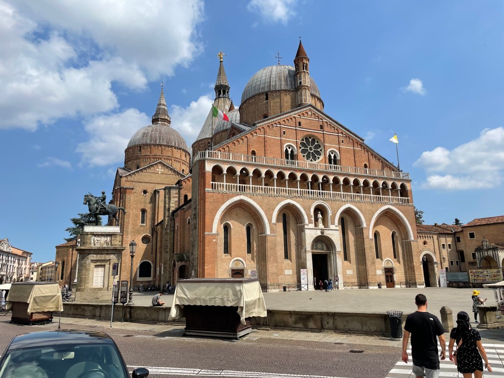 Let’s see, where to start? Maybe with our daytrip to Padua, or Padova, a small city outside of Venice with perhaps the most important works of Western art, ever, frescoes by the Florentine artist Giotto di Bondone, in a small early 14th century chapel next to an ancient Roman arena. Rick and I left Will and Amy in Venice to spend the day on their own, going to the Biennale, Venice’s huge modern art extravaganza, and shopping. But Rick and I opted for the medieval, traveling the 30 minutes by train to Padua, home of one of Europe’s oldest universities (Galileo studied there) and also the home this weekend to a saber Grand Prix, where several of Will’s friends and teammates are fencing. Will’s coach from OFA, Adam, and his daughter are here, and we are missing them in Venice by just one day. We joked with Will that his Notre Dame teammate and friend Jared Smith was going to take a break from the fencing to meet us at the Scrovegni Chapel, and that Jared just LOVED it.